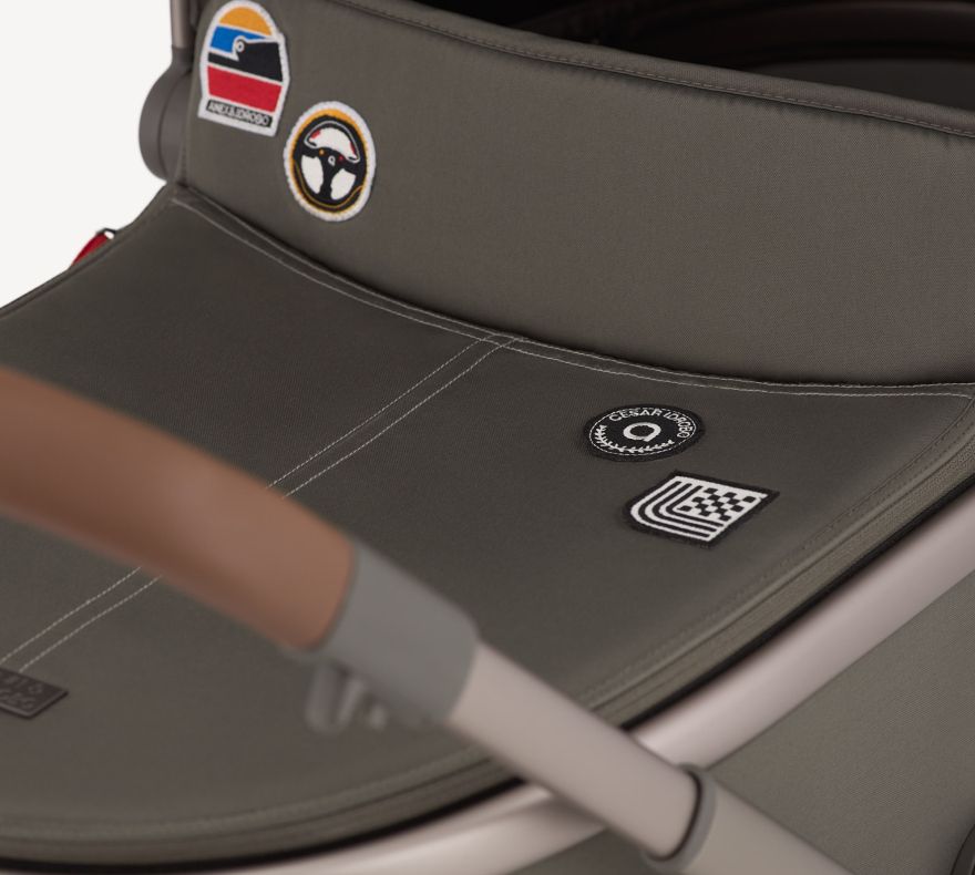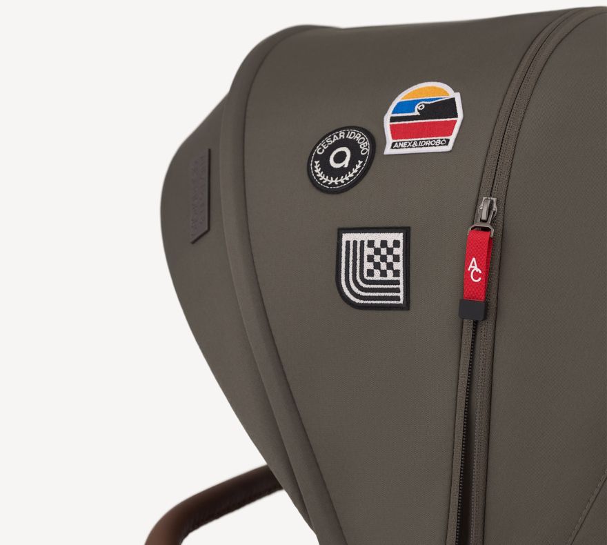 Współpraca z projektantem Cesarem Idrobo sprawiła, że wózek wyróżnia się na tle innych modeli wózków. Detale takie jak: czerwone pasy i zamki, wyścigowe naszywki podkreślają indywidualny charakter wózka.