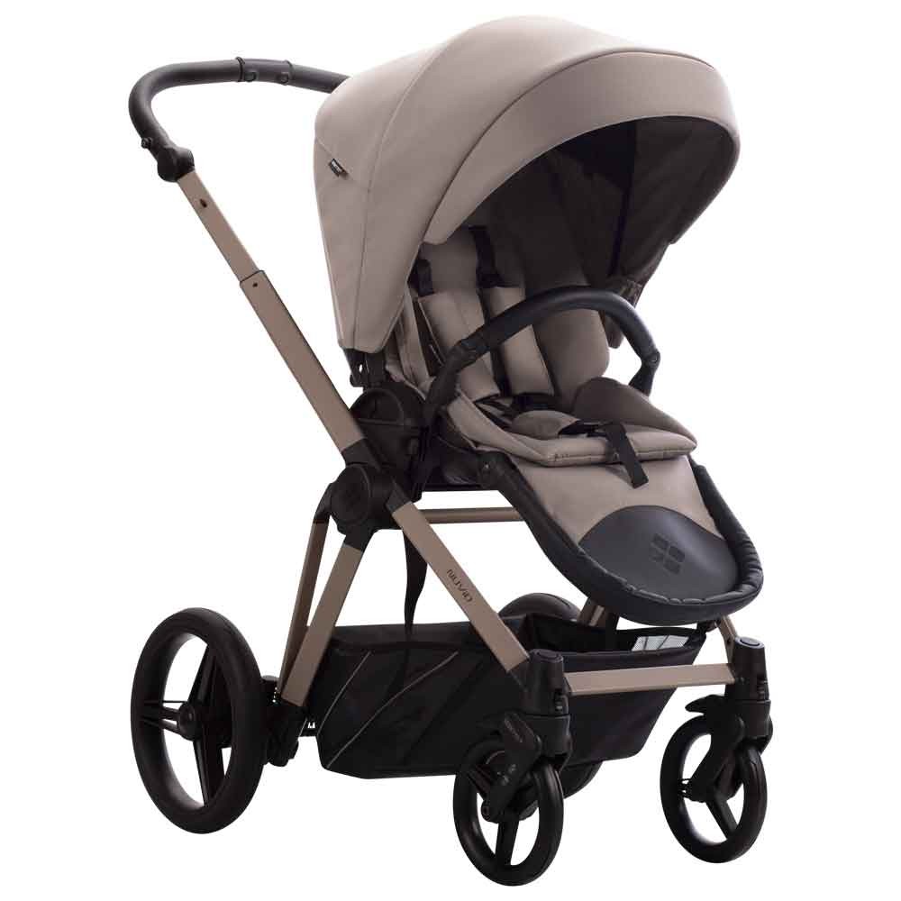 Całość osadzona jest na unikatowych stelażach w modnych odcieniach Kaszmir, Brown oraz Cream, które podkreślają nowoczesny charakter wózka.